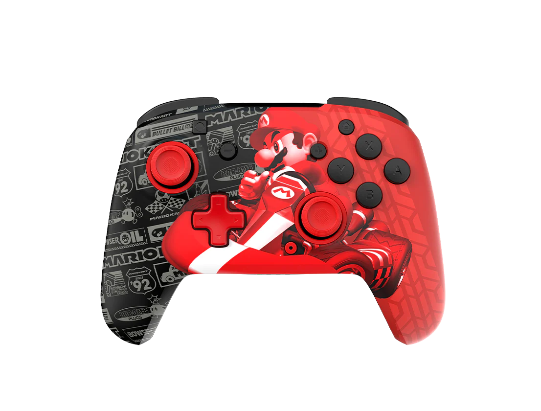 Brighten up the darkest of gaming rooms with a glow-in-the-dark design after exposure to UV light. For long gaming sessions, you will appreciate the rechargeable battery providing up to 40 hours of play and up to 30-foot wireless range so you can play comfortably from anywhere in the room. Play with natural precision using built-in motion controls in games like Mario Kart™ 8, and new games like Mario Kart™ World and Donkey Kong™ Bananza. With bold style, responsive features, and a glow-in-the-dark design, the officially licensed Rematch Wireless Controller for Nintendo® is ready for your next adventure. This controller also works with Nintendo Switch™ 2 – C Button not available.